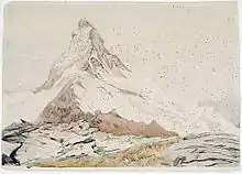 The Matterhorn was studied by Horace-Bénédict de Saussure in the late eighteenth century, and was followed by other renowned naturalists and artists, such as John Ruskin, in the 19th century. It remained unclimbed after most of the other great Alpine peaks had been attained and became the subject of an international competition for the summit. The first ascent of the Matterhorn was in 1865 from Zermatt by a party led by Edward Whymper, but during the descent, a sudden fall claimed the lives of four of the seven climbers. This disaster, later portrayed in several films, marked the end of the golden age of alpinism.[3] The north face was not climbed until 1931 and is among the three biggest north faces of the Alps, known as "The Trilogy". The west face, the highest of the Matterhorn's four faces, was completely climbed only in 1962. It is estimated that over 500 alpinists have died on the Matterhorn, making it one of the deadliest peaks in the world.[4]