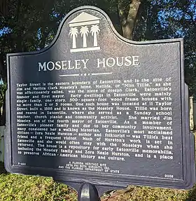 Moseley House Museum is a house museum located in Eatonville, Florida.[1] The house is the second oldest structure in the town, constructed in 1888. The house was owned by Jim and Matilda Clark Moseley, Matilda was the niece of Eatonville's founder and first mayor. Author Zora Neale Hurston was a friend of Matilda and often visited the house. The house was restored and opened as a museum in 2000. It currently exhibits early Eatonville memorabilia.[2]