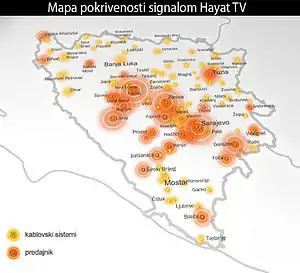 Hayat TV is a television station from Sarajevo, Bosnia and Herzegovina. The word, "Hayat", means "life" in Arabic.