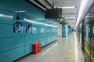 Nanzhou Station (Chinese: 南洲站; Jyutping: naam4 zau1 zaam6; Cantonese Yale: Nàahmjāu Jaahm), formerly Nanzhou Coach Station (南洲客运站; 南洲客運站; naam4 zau1 haak3 wan6 zaam6; Nàahmjāu Haak'wahnjaahm)[1] during its planning stages, is an interchange station between Line 2 on the Guangzhou Metro and the Guangfo Line.[2]
