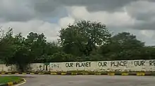 Protest art on boundary wall of NARC against converting its land into a residential housing society