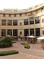 The National Museum building was planned to be built in phases to finally give it an octagonal shape. Its first phase was inaugurated in 1960, and the second was completed in 1989. For the third and final phase, a foundation stone was laid on December 18, 2017, and involves the razing down of the Archaeological Survey of India (ASI) building which has been moved to Dharohar Bhawan.[19] As maps of the original plan suggest, roughly a quarter portion remains to be added for the completion of the building. The National Museum building has three floors with galleries radiating from a central garden court.[20] The National Museum Institute, which is on the first floor of the museum and has a "deemed to be university" status, will be shifting to a new campus in Noida.[19]