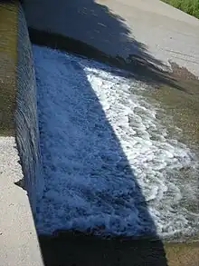 Aravaipa Canyon is protected from disturbance in part by the Aravaipa Canyon Wilderness Area (managed by the Bureau of Land Management) and the Aravaipa Canyon Preserve (managed by The Nature Conservancy). However, non-native invasive species such as those listed above have become an increasing concern in Aravaipa Canyon. Non-native species are only termed "invasive" when they have a negative impact on the ecosystem into which they are introduced.[5] It is believed that these invasives are contributing to the decline in the number of native fishes found from year to year in the canyon.[6] They are credited with outcompeting the native fish for resources such as food and habitat. They are a generalist species, meaning they are adapted to suit a variety of ecological niches. They therefore have the potential to exploit the general location more than any one of the native fish species can, being as specialized as they are to a single niche.[7] The Nature Conservancy in particular is actively managing the native fish populations and working towards restoring them to their previous abundance by conducting projects such as fish monitoring and removal of non-native species.[8] Initiatives have also been put in place to attempt to slow the progress of invasive species up Aravaipa Creek. One such endeavor is the construction of fish barriers, which are low concrete walls spanning the water, creating an artificial series of waterfalls that the invasives cannot pass.