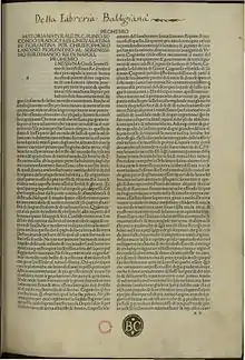 In the preface, the author claims to have stated 20,000 facts gathered from some 2,000 books and from 100 select authors.[24] The extant lists of his authorities cover more than 400, including 146 Roman and 327 Greek and other sources of information. The lists generally follow the order of the subject matter of each book. This has been shown in Heinrich Brunn's Disputatio (Bonn, 1856).[4][25]