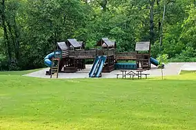 New Glarus Woods State Park is a 431-acre (174 ha) Wisconsin state park featuring rolling hills covered by a mix of forest and prairie. The Sugar River State Trail connects to the park, making the park accessible by bike. This trail also connects to the Badger State Trail.