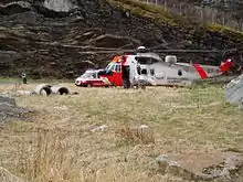 Search and rescue was at the time only a secondary role for various air force units, such as the Albatross, Bell UH-1B and Bell 47. Norway lacked the dedicated SAR service that Denmark had. This became evident in 1966, when the Norwegian ferry Skagerrak sank off the Danish coast in September 1966. Everyone on board was saved, but it was questioned whether this would have been the case if the incident had occurred in Norwegian waters.[54] The task was given to the Ministry of Justice, who as a temporary solution from 1968 to 1973 signed an agreement with Helikopter Service to operate two Sikorsky S-61 out of Sola and Bodø.[55]