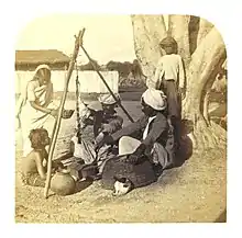 According to archeological finds, Indus Valley civilisation had dominance of meat diet of animals such as cattle, buffalo, goat, pig and chicken.[16][17] Remnants of dairy products were also discovered. According to Akshyeta Suryanarayan et al.,[lower-alpha 1] available evidence indicates culinary practices to be common over the region; food-constituents were dairy products (in low proportion), ruminant carcass meat, and either non-ruminant adipose fats, plants, or mixtures of these products.[18] The dietary pattern remained same throughout the decline.[18]