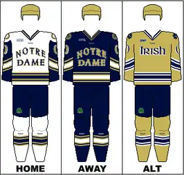 The Notre Dame Fighting Irish men's ice hockey team is the college ice hockey team of the University of Notre Dame, competing at the NCAA Division I level as an associate member of the Big Ten Conference. The Irish play their home games at Compton Family Ice Arena. The head coach of the Fighting Irish is Jeff Jackson, and his assistant coaches are Paul Pooley, Andy Slaggert, and Max Mobley.