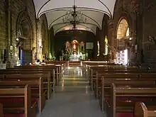 The stone vault of the interior has been replaced lately by one of plywood plastered with stucco cement which ages the structure, original Ermita-type structure. The interiors and the window details have influences of the Baroque architecture.