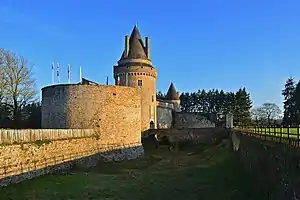 The Breton Duke John 1, had forced Olivier II’s father to capitulate on previous conflict, and only addressed Olivier II thereafter. The duke also obliged the de Clissons to pay a penalty of 4 000 livres, but refused to repair a damaged de Clisson castle, generally presumed to refer to the castle at Blain. The castle of Blain had not been destroyed in its entirety so Olivier II undertook work in order to restore it. Olivier II had the tower of the drawbridge rebuilt, the prison towers and its two curtain walls, the belfry, and the buildings of the Petit Château rebuilt. [1]