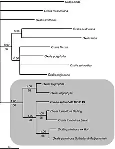 3. 1 2 3 Dreyer, L. L.; Roets, F.; Oberlander, K. C. (2008). "Oxalis saltusbelli: A new Oxalis (Oxalidaceae) species from the Oorlogskloof Nature Reserve, Nieuwoudtville, South Africa". South African Journal of Botany. 75 (1): 110–116. doi:10.1016/j.sajb.2008.08.004.