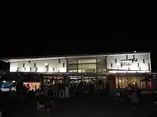 Palmerston library by night. The Palmerston markets can be seen in the foreground.