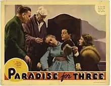 Paradise for Three, titled Romance for Three in the United Kingdom, is a 1938 American romantic comedy film starring Frank Morgan as a wealthy industrialist who learns about his German workers by surreptitiously living among them. It was adapted from Erich Kästner's novel Three Men in the Snow, published in 1934.