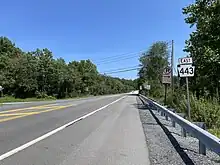 Pennsylvania Route 443 (PA 443) is an 80-mile-long (130 km) east–west state highway in the US state of Pennsylvania. The western terminus is at an intersection with State Route 3009 (SR 3009) at North Front Street on the east bank of the Susquehanna River in the community of Fort Hunter in Middle Paxton Township, just west of an interchange with the U.S. Route 22 (US 22)/US 322 freeway. The eastern terminus is at US 209 in Lehighton. The route runs through rural areas in the Ridge-and-Valley Appalachians in Dauphin, Lebanon, Schuylkill, and Carbon counties, serving Fort Indiantown Gap, Pine Grove, Schuylkill Haven, Orwigsburg, New Ringgold, and South Tamaqua. PA 443 intersects several major roads, including US 22/US 322 near its western terminus, PA 72 in Union Township, Interstate 81 (I-81) near Pine Grove, PA 61 between Schuylkill Haven and Orwigsburg, and PA 309 in South Tamaqua.