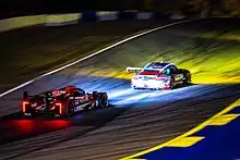 The 2009 and 2015 races were shortened due to heavy rains making the track impassable. The 2015 race featured the first time a GT car won overall against the faster prototypes. Rain created a flooded track the entire race causing multiple cautions and a red flag, allowing GTLM cars to leap-frog the prototypes that were struggling for grip in the conditions.[5] Nick Tandy, winner of the 2015 24 Hours of Le Mans, and co-driver Patrick Pilet took the checkered flag when officials called the race with a little over two hours remaining.