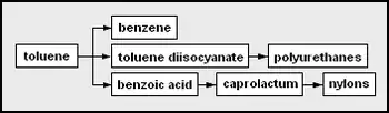 - toluene – methylbenzene; can be a solvent or precursor for other chemicals
