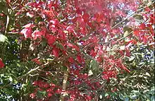 The mountain's steep sides are home to a succession of tropical forest tiers, namely (in ascending order): deciduous dipterocarp, mixed deciduous, dry evergreen, and hill evergreen forests, interspersed with bamboo. In contrast to that, the plateau at the mountain top consists of a sandy pine savanna landscape. Dominant tree species are Siamese sal (Shorea obtusa), Shorea siamensis, Diospyros spp., Lagerstroemia spp., Podocarpus neriifolius, maple, Pinus latteri, and Pinus kesiya. The grass fields support a variety of flowers, such as Hydrocera triflora, Torenia fournieri and marigolds. These flowers bloom at different times of the year. Some grow well in the rocky fields including Dendrobium sp. Close to the ground are ferns, mosses, and Serissa sp.[1] Lady's slipper orchids such as Paphiopedilum grow on trees.[7]:121