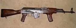 The Pistol Mitralieră model 1963/1965 (abbreviated PM md. 63 or simply md. 63) is a Romanian 7.62x39mm assault rifle. Developed in the late 1950s, the PM md. 63 was a derivative of the Soviet AKM produced under license.[1] It was the standard issue infantry weapon of the Army of the Socialist Republic of Romania until the late 1980s, after which it was gradually superseded by the Pușcă Automată model 1986, a derivative of the Soviet AK-74.