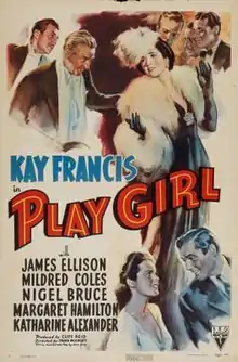 Play Girl is a 1941 romantic comedy film, starring Kay Francis as an aging gold digger who decides to pass on her skills to a young protégée, and featuring James Ellison, Mildred Coles, Nigel Bruce, Margaret Hamilton and Katherine Alexander.