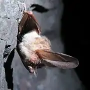 The brown long-eared bat or common long-eared bat (Plecotus auritus) is a small Eurasian insectivorous bat. It has distinctive ears, long and with a distinctive fold. It is extremely similar to the much rarer grey long-eared bat which was only validated as a distinct species in the 1960s. An adult brown long-eared bat has a body length of 4.5–4.8 cm, a tail of 4.1–4.6 cm, and a forearm length of 4–4.2 cm. The ears are 3.3–3.9 cm in length, and readily distinguish the long-eared bats from most other bat species. They are relatively slow flyers compared to other bat species.
