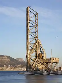 Pont basculant de la Seyne-sur-Mer is a former bascule bridge in La Seyne-sur-Mer in France. It was completed in 1917 and served originally as railway bridge. Today, it is permanently opened and used as 44 metres tall observation tower.