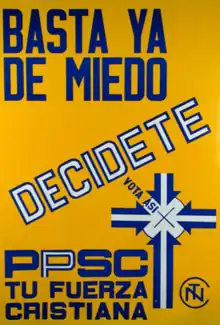 The Popular Social Christian Party (Spanish: Partido Popular Social Cristiano - PPSC), was a Nicaraguan political party. It was an offshoot of the Social Christian Party formed in the late 1970s when Manolo Morales led schism from the PSC.[1]