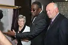 Clive Lloyd (centre) re-opens the clubhouse flanked by President Mrs Anne Orrell and Chairman Mr Brian Lorenzini. May 2011