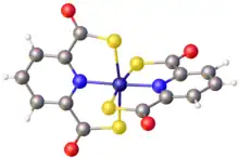 - ↑ Hildebrand, U.; Lex, J.; Taraz, K.; Winkler, S.; Ockels, W.; Budzikiewicz, H. (1984). "Untersuchungen zum Redox-System Bis-(pyridin-2,6-dicarbothioato)-Ferrat(II) /-Ferrat(III) [1]". Zeitschrift für Naturforschung B. 39 (11): 1607–1613. doi:10.1515/znb-1984-1123. S2CID 94908888.