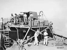 The QF 4-inch gun Mk IV[note 1] was the main gun on most Royal Navy and British Empire destroyers in World War I. It was introduced in 1911 as a faster-loading light gun successor to the BL 4 inch Mk VIII gun. Of the 1,141 produced, 939 were still available in 1939.[1] Mk XII and Mk XXII variants armed many British interwar and World War II submarines.