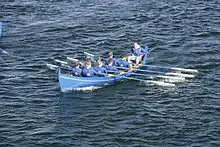 Róðrarfelagið Knørrur is a Faroese rowing club in Tórshavn, which was founded on 28 February 1985.[1] The club has its boat houses on Skálatrøð and Evensens pakkhús in Tórshavn. The boats compete in the rowing competitions which are held every summer around the islands. The row boats are blue with a white line around the top of the boat. All of the boats have names from the Faroese ballad Ormurin Langi.[2] The boats of the row club has won several Faroese Championships. One of the former rowers of the club is Olympic rower Katrin Olsen, who became Faroese Champion with Róðrarfelagið Knørrur in 1997 and 1999, before she moved to Denmark. Later she became Danish champion in a different kind of rowing; in Denmark she was rowing in a lightweight double sculler. In 2008 she participated in the 2008 Summer Olympics together with Juliane Rasmussen, they ended up as number seven in the Women's lightweight double sculls.[3] The Faroese word for boat race or rowing competition is Kappróður.