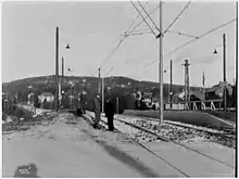 The process of extending the Holmenkollen Line from Majorstuen to the city center had started in 1901. The process had been delayed several times because of disagreements between the city and the company, in part because the two could not agree if it should be classified as a railway or a tramway. Construction started in 1912, but stopped again in 1914 because the municipality and the company could not agree on the location of the terminus. The municipality wanted it at Ruseløkkveien, but this would make it difficult for the company to build the tunnel through the city center to connect to the suburban tramways east of the city center. Construction was stopped in October 1914.[4]
