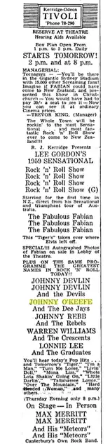 - ↑ "Rock'n'Roll Singer". The Press. 17 December 1959. p. 10.