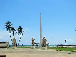 Three of the explorer's statues in front of the museum