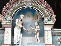 Sambandar was a young Saiva poet-saint of Tamil Nadu who lived around the 7th century CE.[14] He is one of the most prominent of the sixty-three Nayanars, Tamil Saiva bhakti saints who lived between the sixth and the tenth centuries CE. Sambandar's hymns to Shiva were later collected to form the first three volumes of the Tirumurai, the religious canon of Tamil Saiva Siddhanta. He was a contemporary of Appar, another Saiva saint.[15]