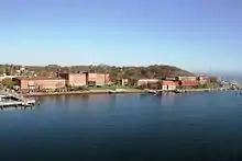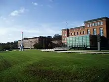 Since 1950, the Landtag convenes in the Landeshaus in Kiel, which was built in 1888 as the Royal Marine Academy.[1] During the Nazi-Era, the Landeshaus served as seat of the German Navy's Baltic Sea Command.[1] Up to 1950, the Landtag convened in Lübeck, Flensburg and Eckernförde as well as in Kiel.[1] Since its renovation in 2003, the Landtag is assembled in a new Chamber inside of the Landeshaus.[1]
