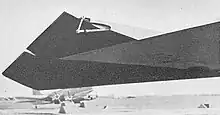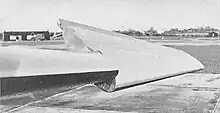 The Short SB.4 Sherpa was an experimental aircraft, featuring an unusual aero-isoclinic wing.[6] This radical wing configuration was designed to maintain a constant angle of incidence regardless of flexing, by placing the torsion box well back in the wing so that the air loads, acting in the region of the quarter-chord line, have a considerable moment arm about it. The torsional instability and tip stalling characteristics of conventional swept wings were recognised at the time, together with their tendency to aileron-reversal and flutter at high speed; the aero-isoclinic wing was designed to specifically prevent these undesirable effects.[7]