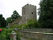 The Anglican parish church has Anglo-Saxon nave walls and massive square tower. The aisles were added later. This was a hundredal church, the central church of the Hundred of Singleton, a Saxon administrative grouping of parishes. The tower has three Saxon windows and a Saxon doorway leading into thin air high up in the nave, showing that there was once an upper room above the nave.[7] It is likely that the priests for the churches in the hundred would have lived in this room. The Saxon tower arch was rebuilt in the twelfth or thirteenth century with a pointed arch. The pews are from the Tudor period. The church is a Grade I listed building.[8]