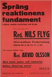 - ↑ Stenfeldt, Johan (2019). Renegater : Nils Flyg och Sven Olov Lindholm i gränslandet mellan kommunism och nazism. Lund: Nordic Academic Press. ISBN 9789188909282.