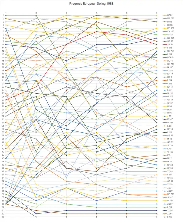 4. Lars Norrby. Walker, Stuart (ed.). "EUROPEAN CHAMPIONSHIP: won by Jochen Schümann, Warnemünde, DDR" (PDF). Soling Sailing. Vol. 14, no. 3. International Soling Association. p. 8 & 9. Retrieved 24 February 2020.