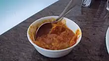 In Nepal, achaar (Nepali: अचार) is commonly eaten with the staple Dal-Bhat-Tarkari as well as momo.[26] Many achaar factories in Nepal are women-owned or operated by women.[27][28] Nepalese achaar is made with spices such as mustard seeds, timur (Sichuan pepper), cumin powder, coriander powder, turmeric powder, and chili powder. Some of the popular varieties of achar eaten in Nepal are: