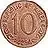 | 10 hwan | 19.1 mm | 2.46 g | Copper 95% Zinc 5% |