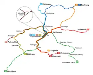 - ↑ "Tarifzoneneinteilung" (PDF). Verkehrs- und Tarifverbund Stuttgart. 1 April 2020. Retrieved 16 April 2020.