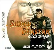 Sword of the Berserk: Guts' Rage, released in Japan as Berserk Millennium Falcon Arc: Chapter of the Flowers of Oblivion (ベルセルク 千年帝国の鷹篇 喪失花の章, Beruseruku Sennen Teikoku No Taka Hen Wasurebana no Shō), is a hack and slash action video game for the Dreamcast.[2] It is based on the popular Berserk manga by Kentarō Miura and the game is set between volume 22 and 23 of the manga; right after Guts and Puck depart for Elfhelm with Casca (chapter 182), but before Farnese, Serpico, and Isidro catch up with them (chapter 190). The music is composed by Susumu Hirasawa, who also composed the anime series' music.