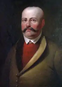 He was, and to the present day is, considered a shining example of a patriot.[1] He has been the subject of many art works, poems, songs and books.[1] Writers who mentioned him included Stanisław Staszic, Franciszek D. Kniaźnin, Adam Mickiewicz, Józef Szujski, Leon Wegner, Seweryn Goszczyński, Jan Lechoń, Artur Oppman, Seweryna Duchińska, Maria Konopnicka, Kazimierz Brończyk, Wiktor Woroszylski, Marian Brandys, and Jerzy Zawieyski.[1] A bust of Rejtan was funded by his family in 1860, and is in the National Museum in Kraków.[1] A small monument of him is said to have collapsed in Kraków in 1946, soon after World War II,[3] and was not rebuilt until 2007.[7] A medal with his face was issued in the Grand Duchy of Poznań in 1860.[1] Several portraits of him exist, including one by Franciszek Smuglewicz.[1] However, his most famous depiction is that by Jan Matejko, who showed a more fictionalized version of the events at the Partition Sejm in his 1866 painting, Rejtan na sejmie warszawskim 21 kwietnia 1773 – upadek Polski (Rejtan at the Warsaw Sejm of 21 April 1773 – the Fall Of Poland).[1][6][8][9][10] Numerous schools, streets and military units in Poland bear his name as well.[1]