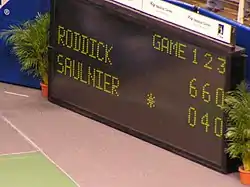 The scoreboard of a tennis match.