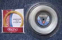 Most synthetic strings are made from monofilament or multifiliament nylon strings. Monofilament strings are cheap to buy, and are used widely by many recreational level players for their all round performance, while multifilament strings are created to mimic natural gut more closely by weaving together fibres, but are generally more expensive than their monofilament counterparts.[58] Polyester strings allow for more spin on the ball than any other string, due to their firm strings, while keeping control of the ball, and this is why many players use them, especially higher player ones.[60] Kevlar tennis strings are highly durable, and are mostly used by players that frequently break strings, because they maintain tension well, but these strings can be stiff on the arm.[61]