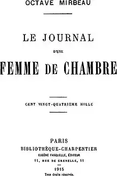 The Diary of a Chambermaid (French: Le Journal d'une femme de chambre) is a 1900 decadent novel by Octave Mirbeau, published during the Dreyfus Affair. First published in serialized form in L’Écho de Paris from 1891 to 1892, Mirbeau’s novel was reworked and polished before appearing in the Dreyfusard journal La Revue Blanche in 1900.
