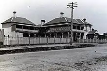The Springwood Hotel was built in 1878 by Frank Raymond as a long, single-storied, low-browed building with a simple verandah facing the main road.[2]