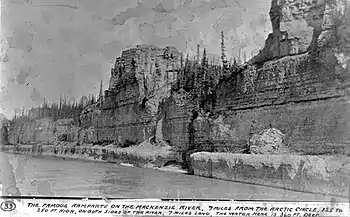Early explorers for the North West Company reported that Stone Age "eskimo" were known to have ascended the river as far as The Ramparts, in search of flint, to make stone tools.[4]