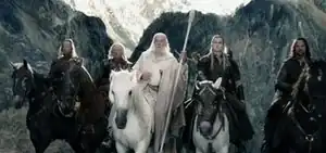 Aragorn, Legolas, and Gimli pursue a band of Uruk-hai to save their companions Merry and Pippin, entering the kingdom of Rohan. The Uruk-hai are ambushed by a group of Rohirrim, allowing Merry and Pippin to escape into Fangorn Forest. Meeting Aragorn's group, the Rohirrim's leader Éomer explains that he and his men have been exiled by Rohan's king, Théoden, who is under the control of Saruman and his servant Gríma Wormtongue. Éomer believes Merry and Pippin were killed during the raid but leaves the group two horses. In Fangorn, Aragorn's group encounters Gandalf, who after his fight against the Balrog was resurrected as Gandalf the White to help save Middle-earth.